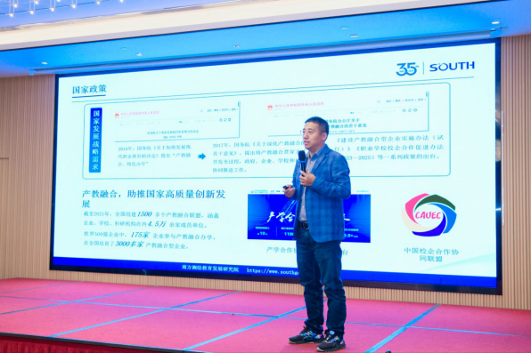 会议的第二阶段为专业建设和国际合作交流阶段,由江苏海洋大学焦明连教授主持。会议特邀中国矿业大学高井祥教授、广州南方测绘科技股份有限公司郭宝宇副总裁、中国地理信息产业协会国际交流与合作工作委员会倪涵秘书长分别做“智能化背景下测绘类专业教育问题思考与对策”、“测绘地理信息+人才高质量培养的南方实践”和“基于国际产教融合的测绘地理信息联合办学的思考”的报告,为测绘类专业的建设指出了发展路径。
