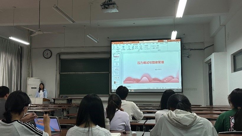 邀请心理健康中心王鹏鹏老师、祝怡婷老师给学院心理委员、部分学生分别进行培训,让他们在体验中提升团辅活动的组织能力,学会如何进行压力调试与情绪管理。