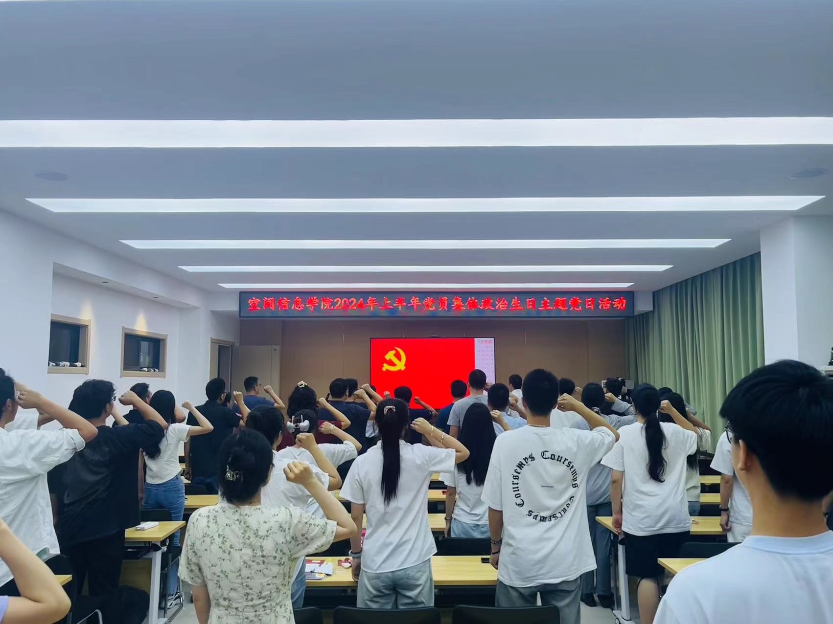 在学院党委书记范洪喜的带领下,全体成员庄严而立,高举右拳,面向党旗一字一句地宣读了入党誓词。慷慨激昂的宣誓声中,不仅展现了新党员对于入党的激动和憧憬,也饱含了老党员对重温入党誓词的不变初心。
