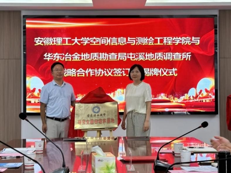 王磊介绍了学校和学院近几年取得的成就、学科专业发展、科研创新、科产教融合、学生就业等方面的基本情况。校企双方表示要以此为契机,在人才培养、科研合作等方面加强合作。随后,双方签署了战略合作协议,并举行了“教学与实践基地”“研究生实践基地”揭牌仪式。