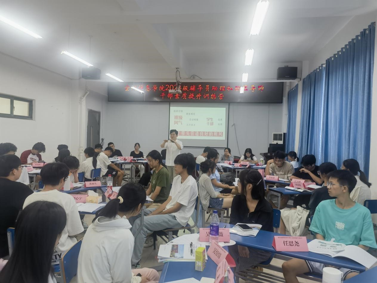 韦伟老师讲授大学生职业生涯规划专题,强调了角色定位和助导朋导角色的重要性;胡豪杰老师围绕大学生班级建设展开讲解,提出营造良好班级风气的方法;赵明君老师进行安全教育专题授课,强化学生的安全意识和认知;常风姣老师讲解心理健康教育和心理危机的识别,并提出了解决策略。