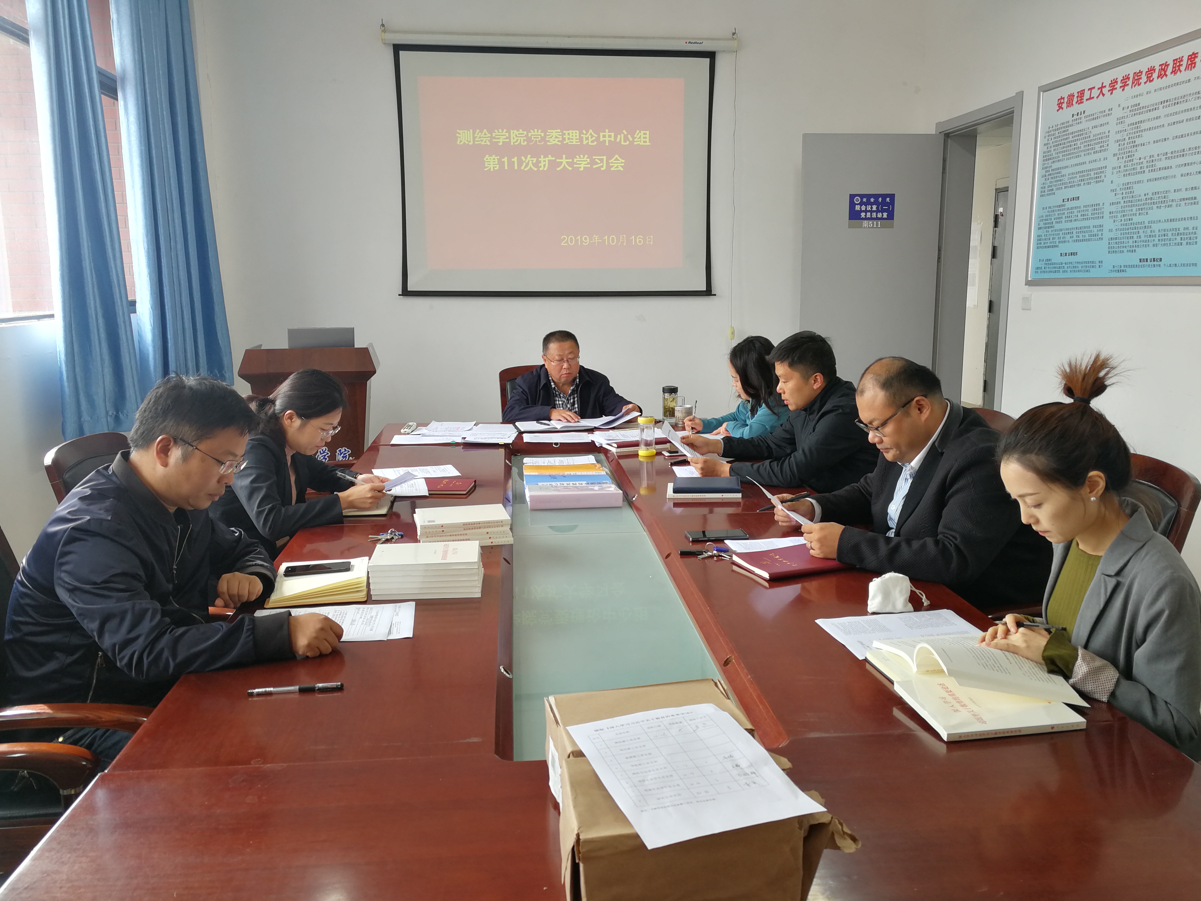 10月16日下午,365英国上市网站官网党委在求本楼南511会议室召开院党委理论学习中心组专题学习会暨“不忘初心、牢记使命”主题教育集中学习研讨会。会议由党委书记吴军主持,院党委理论学习中心组成员、院主题教育领导组成员、支部书记参加了学习会。