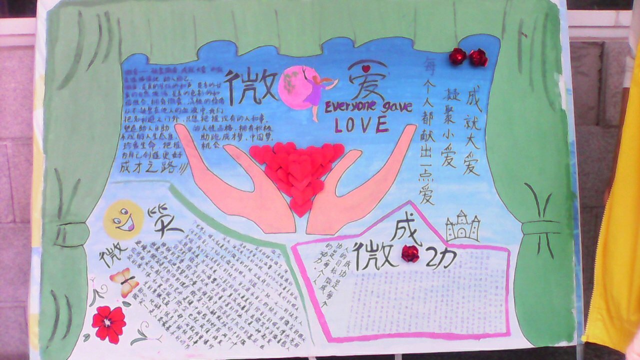 此次大赛是以班级为单位,各班围绕“我爱我·我健康”的活动主题,分别设计与制作了代表本班级的优秀手抄报作品。比赛共分为两个环节。3分钟的现场讲解部分,各班解说员分别对本班的手抄报做了精彩而又生动的介绍。其中有反应当代大学生积极乐观的人生态度,有包含温暖的人文关怀,有无私奉献的感人事迹等。第二环节是现场评委点评,评委们根据手抄报的内容,以及解说员的现场讲解,分别提出了手抄报制作的相关宝贵经验,以及对各自主题的深刻理解。解说员饱含激情,在悠扬的背景音乐萦绕下,每幅作品仿佛都将我们带入了纯洁而又神圣的殿堂!其中13级测绘2班的作品《微笑·微爱·微成功》在比赛中荣获一等奖。整幅手抄报分别从三个不同角度出发,诠释了大学生应该以乐观的心态,微笑着面对生活;以纯洁的爱心,善待我们的社会;以昂扬的斗志,走向通往成功之路。测绘1班、地信1班分别荣获二等奖,遥感1班、地信2班、测绘3班分别获得三等奖。